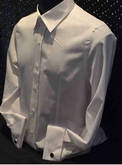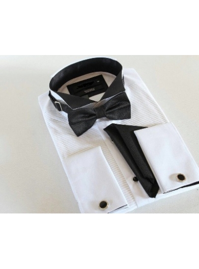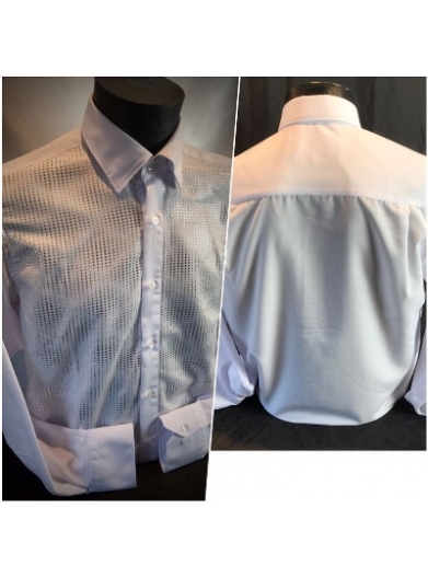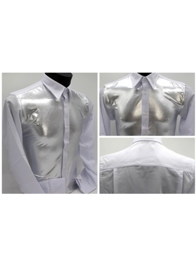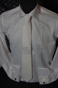 Classic white shirt & tie, with cuff links, it has glamour touch of silver pattern on the collars, cuffs and in the middle of the tie.