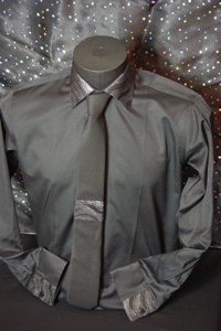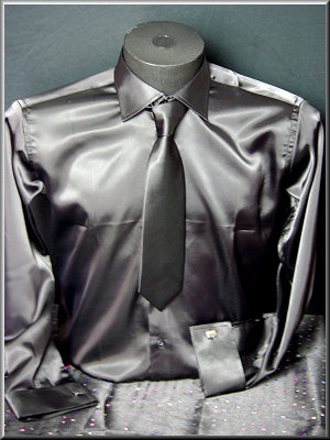 Classic black shirt & tie, with cuff links, it has glamour touch of silver pattern on the collars, cuffs and in the middle of the tie.