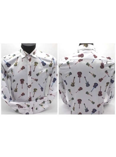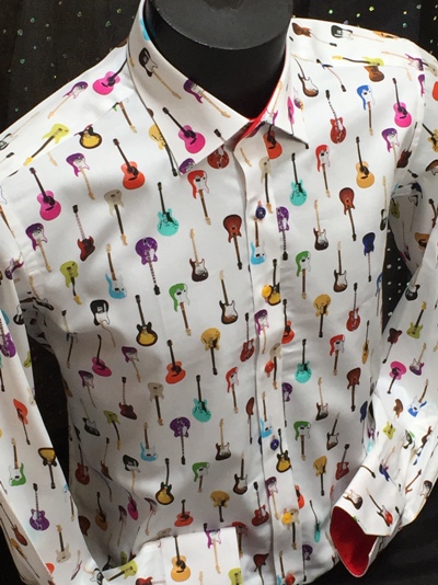 very beautiful white retro guitarist shirt, long sleeves, giving you that extra base!
