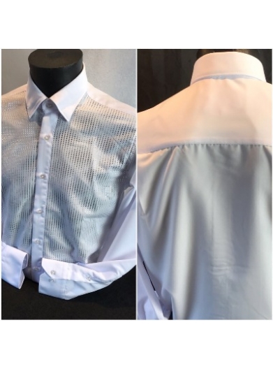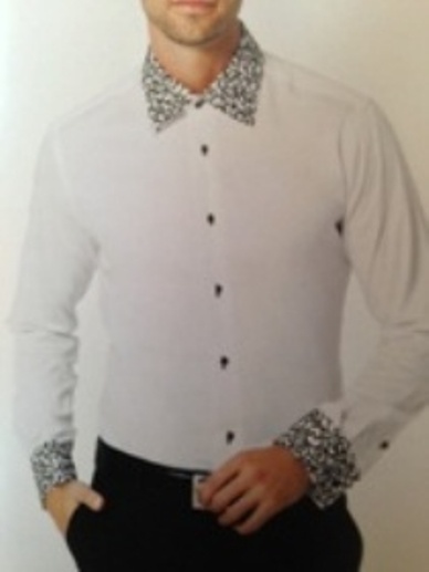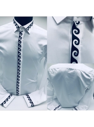 Sonata - form. white shirt with black velvet design on the collars and cuffs. Exposure with its design,