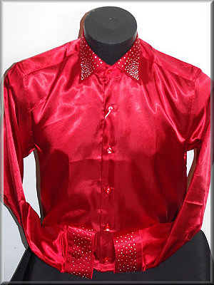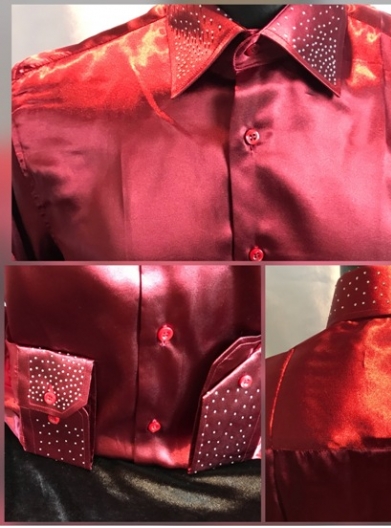 Slim fit beautiful Design Red Colour Classic Shirt with Diamonds on Collar & Cuffs - looks great on stage or parties.