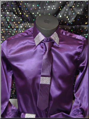 Limited Edition - colour Purple shirt & tie with crushed diamonds on the collar, cuffs and tie.