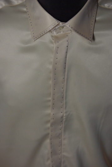 There is no limit to the creativity of this awesome diamante long sleeves shirt with matching tie in off white colour, made in soft satin fabric, it looks great with sparkly rhinestones on the collar cuffs and also on the matching tie, the shirt & tie is an even more eye-catching design with a sparkly finish.