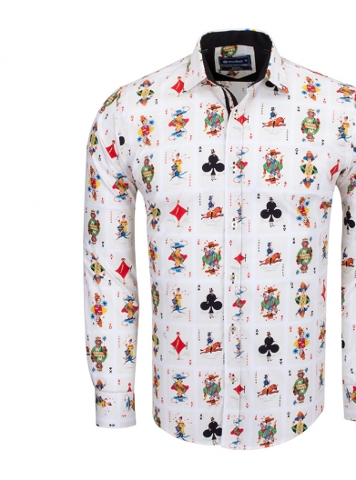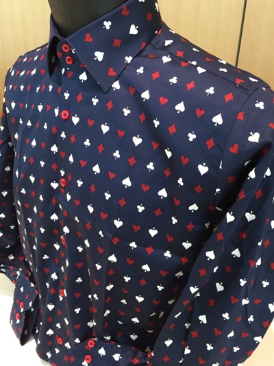 Beautiful blue colour cards print shirt, also available same design in sky blue colour in Medium & Large