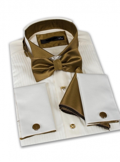 Sheen white soft and silky shirt with diamond strip on the edge of the collar, cuffs and matching tie