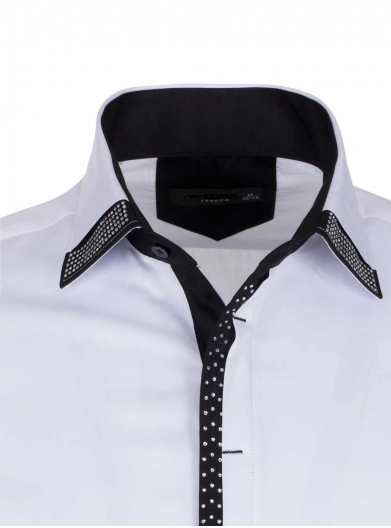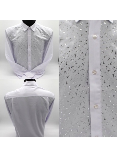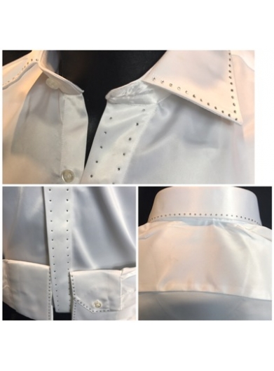 This appealing white round collar shirt has single diamonds which are beautifully placed on the button down