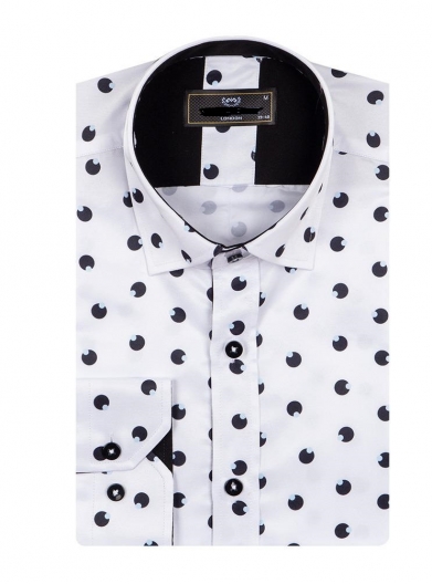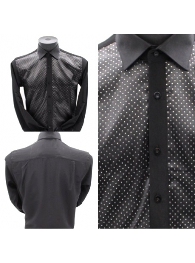 A shirt that melds for all occasions with artistic expression, our designers shrewdly created this beautiful black shirt with high sheen polka dot prints to create imaginative.