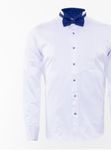 Beautiful slim fit blue colour shirt made with nice & smooth cotton fabric, with double cuffs and with cuff links - ideal for stage wear, special occasions or casual wear.