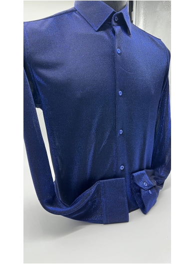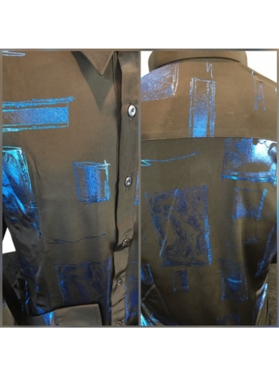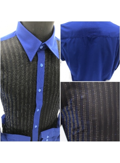 This stylish navy blue color high-sheen shirt, this amazing shirt is unique, the front of the shirt is super shiny reflective, and eye-catching.