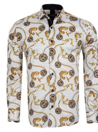 This baroque white shirt with gold print makes the perfect for stagewear. It is made from soft satin fabric with a classic collar, long with buttoned cuffs and a front button closure. Also suitable for party wear or any occasions.