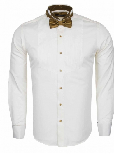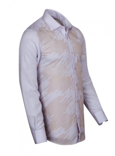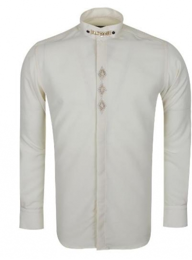Beige colour shirt with a touch of diamonds on the collar. cuffs and button-down strip.