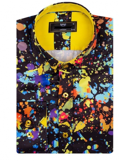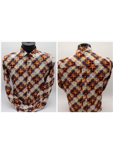 Lovely-looking multi-colored shirt with unusual print. Our designers sourced this very unusual, most luxurious fabric and these are the type of shirts we’ve always wanted to make to look different.