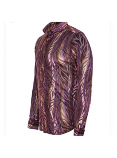 This stylish wine color high-sheen shirt, this amazing shirt is unique, the front of the shirt is super shiny reflective, and eye-catching.
