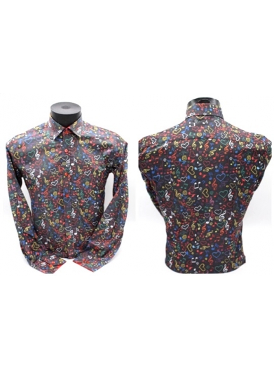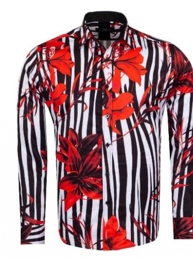Awesome looking black and white stripe shirt with an all over floral print design in red. The shirt is a long sleeved, a full front button fastening with a standard shirt collar and button fastening cuffs. Great for stagewear, party wear or any occasions.