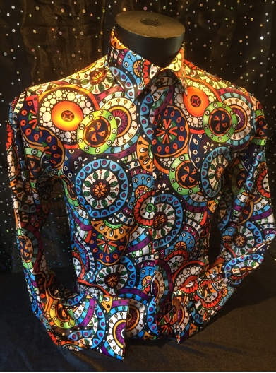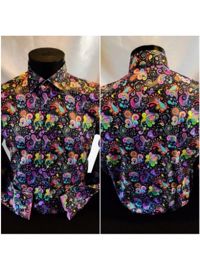 To ensure that you stand out when you need to, this shirt is inspired and just perfect for stagewear or function wear. The fabric has a softer touch, and a deep natural sheen to highlight the glow of the colorful front.