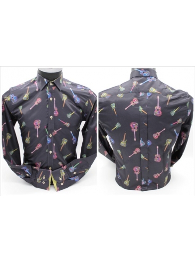 very beautiful black retro guitarist shirt, long sleeves, giving you that extra base!