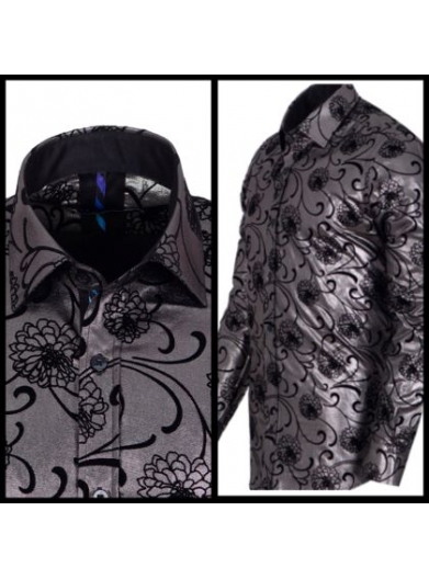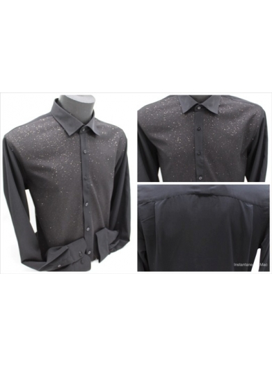 Signor, very characteristic shirt made in black with high sheen silver on the front and cuffs with plain black collars and button down. truly admirable.