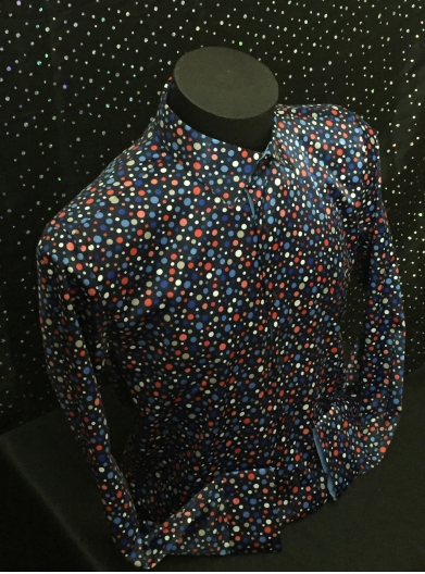 Pelican designers redefines your smart looking stagewear collection with minimal fuss; this awesome blue colour shirt is crafted from a fine soft viscose and finished with a mid sheen silver dots on the front , creating an unassuming classic that's perfect for stagewear.