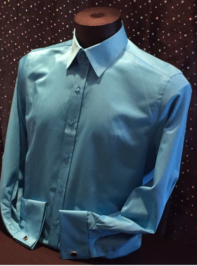Beautiful slim fit turquoise colour shirt made with nice & smooth cotton fabric, with double cuffs and with cuff links - ideal for stage wear, special occasions or casual wear.
